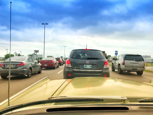 A major turn-off during my look trough window after getting up. Traffic is all backed up and I’m over 20 miles from St. Louis. Not the ideal riding conditions for the Lincoln. I decide to stay in the hotel and do some work.